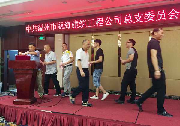 2017年6月23日,溫州市甌海建筑工程公司總支委員會在將軍大酒店召開了第八屆黨員大會。到會黨員33人。景山街道黨工委委員吳益同志、景山街道辦事處副主任李朝暉同志蒞臨大會指導并作了講話。